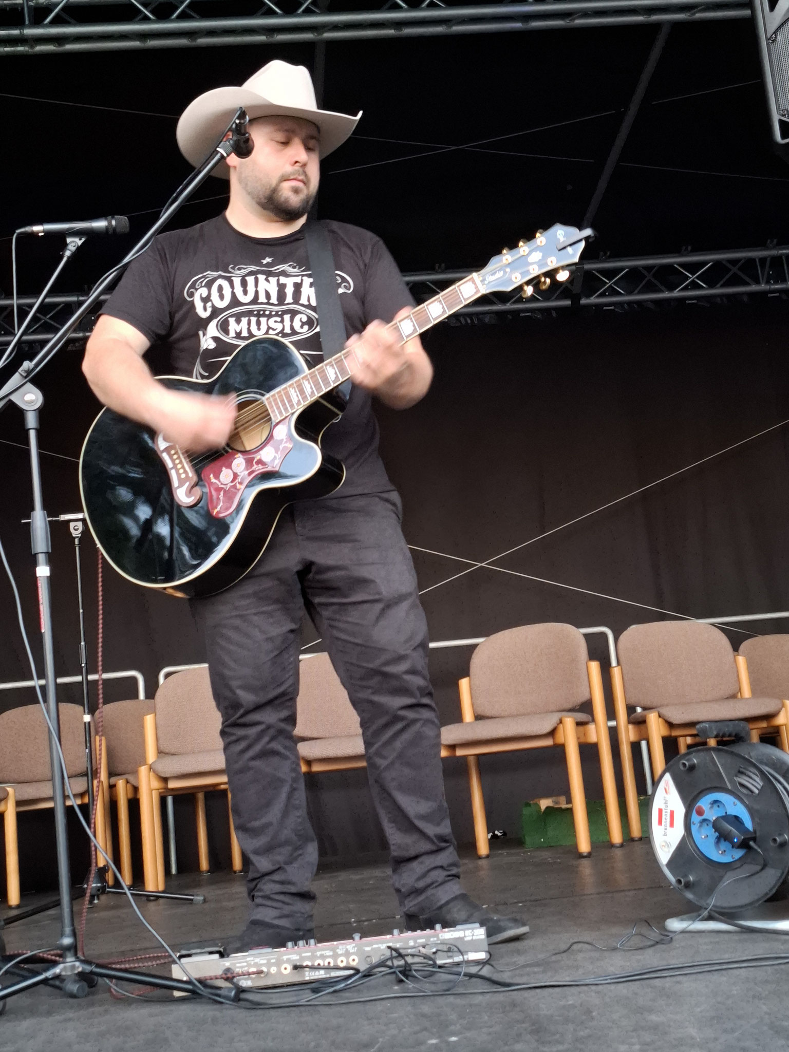 Ein Heimspiel hatte Maikel Tretschok mit seiner Country-Musik, mit bekannten Texten und selbst komponierten Songs, beeindruckte er. Es wurde kräftig mitgesungen und erst nach 4 Zugaben durfte er die Bühne verlassen.